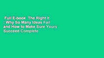 Full E-book The Right It : Why So Many Ideas Fail and How to Make Sure Yours Succeed Complete