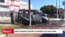 Park halindeki otomobil ve midibüs alev alev yandı