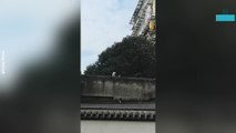 The hilarious video, captured in Nanchang City in Jiangxi Province on May 14, shows a new-born kitten trying to walk slowly into a paper box.