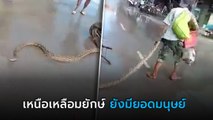 สิ้นลายงูยักษ์ เจอฮีโร่พิชิตด้วยมือเปล่า ป่วนตลาดแค่แป๊บเดียว หมดสภาพงูเลย