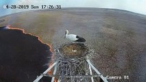Russie : une cigogne couve ses œufs au-dessus des flammes