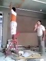 Des ouvriers s'embrouillent à coups d'échelle de chantier