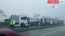 bariyerlere sürten tırın görüntüsü -tırı yoldan kaldırma çalışmaları -karayolları ekiplerinin çalışmaları -tırın kaldırılması -detaylar