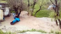 Yağbaşlar köyü yolunda ise seyir halindeyken sele kapılan otomobil içerisindeki 3 kişi, iş makinesiyle güvenli bölgeye alındı.