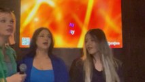 Girl tries to stand on a bench during karaoke and takes a fall