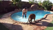 Il se baigne avec son tigre de compagnie