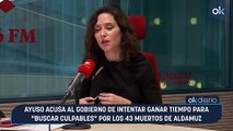 Ayuso acusa al Gobierno de intentar ganar tiempo para "buscar culpables" por los 43 muertos de Aldamuz