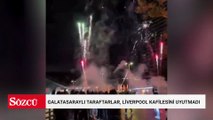 Galatasaraylı taraftarlar, Liverpool kafilesinin kaldığı otelin önünde havai fişek patlattı