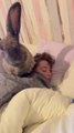 This little boy wanted to sing a lullaby to his sleepy baby bunny. Adorably, he cradled to bunny in his arms like a baby human and sang "Rock-a-Bye Baby" to his furry friend.