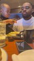 Daughter Feeds French Fries to Father at Restaurant