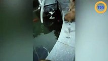Cette femme risque sa vie pour sauver un chaton dans un tuyau d'eau !