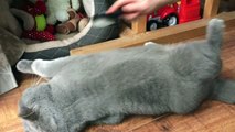 Coconut. Blue British Shorthair. Belly rub