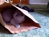 Coconut. Blue British Shorthair. Sniffing new toy - Chop from GTA V