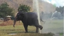 Un éléphant détruit un arroseur pour se doucher