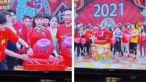 Pour gagner elle doit éclater des ballons avec la tête, heureusement son mari est là