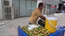 Vitamin deposu dikenli incir serinletiyorAdana'da sıcaktan bunalanlar, seyyar tezgahlarda buz kalıpları arasında soğutularak satılan dikenli incirle serinlik arıyor. Vitamin deposu dikenli incir serinletiyor Adana'da sıcaktan bunalanlar, seyyar tezgahlarda buz kalıpları arasında soğutularak satılan dikenli incirle serinlik arıyor. Anavatanı Güney Afrika olan ve kıraç- kireçli topraklarda yetişen küçük saksılarda kaktüs olarak yetiştirilen, doğal ortamda dev ağaçlar şeklinde büyüyen dikenli incir, Çukurova Bölgesi'nde büyük ilgi görüyor. Vücut direncini artırıp sindirim sistemini çalıştıran ve 'Hint inciri' olarak da adlandırılan dikenli incir, tanesi 1 liradan tezgahlarda satılıyor. Üzerindeki dikenli kabuk tabakası temizlenip seyyar tezgahlarda buz kalıpları arasında soğutularak satılan organik dikenli incir, serinlemeye çalışan kişilerce tüketiliyor. Adana sıcağında soğuk tüketilen dikenli incir satıcısı Mesut Yılmaz (46), Çok şükür satışlarımız iyi. Haber