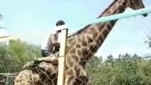 Il grimpe sur une Girafe au Zoo en mode cow-boy