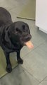 The deaf Australian shepard, named Bernie, holds onto the jar as he struggles to get the last of the peanut butter when the video was taken on June 27.