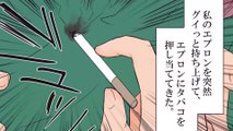 カフェの禁煙席でタバコ吸うサラリーマン客に注意したら、私のエプロンに煙草を押し当て「これで消えましたw 満足だろw」とニヤリ。涙をこらえて耐えていた、次の瞬間…【スカッとする話を漫画化】