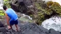 Quand une vague énorme surprend des touristes sur un pont