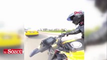Etrafına bakınırken motosikletiyle önünde duran taksiye çarptı