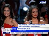 Ariella Arida's close friend and fellow Binibining Pilipinas finalist, Pia Wurtzbach, was in tears after the Laguna beauty was named 3rd runner-up in Miss Universe 2013 early Sunday.
