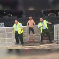 Il danse avec des hommes de la sécurité
