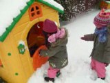 Les filles sous la neige pour la première fois