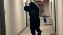 This little boy dressed up as a vampire for Halloween and went to his grandmother's place to do "trick or treat”. When someone opened the door, the boy was startled to see a scary zombie mask welcome him. He jumped back and shouted. Funnily, it turned out to be a prank by his grandmother and everyone had a hearty laugh.