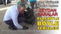 Başkan Zeydan Karalar yerdeki çöpleri elleriyle böyle temizledi