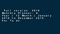 Full version 2019 Monthly Planner: A Year | 12 Month | January 2019 to December 2019 For To do