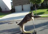 Ce chien maitrise parfaitement sa trottinette