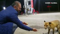 Bayburt'ta Milli futbolcunun babası akaryakıt istasyonuna gelen tilkiyi elleriyle besledi