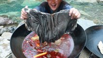 【Shyo video】小伙河邊煮牛雜火鍋,新鮮牛肚直接撕著吃,這樣的生活真爽
