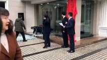 Un homme interrompt une cérémonie en fonçant dans une porte vitrée