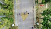 Atatürk'ü sonbahar yapraklarıyla andılarMuğla'nın Menteşe ilçesi Belediyesi'nde görevli 2 temizlik işçisi Mustafa Kemal Atatürk'ü ölümünün 81'inci yılında, süpürdükleri kuru yapraklar ile 1938 yazısı oluşturarak andı. Atatürk'ü sonbahar yapraklarıyla andılar Muğla'nın Menteşe ilçesi Belediyesi'nde görevli 2 temizlik işçisi Mustafa Kemal Atatürk'ü ölümünün 81'inci yılında, süpürdükleri kuru yapraklar ile 1938 yazısı oluşturarak andı. Menteşe Belediyesi Basın Halkla İlişkiler Birimi görevlileri, belediye tarafından yapımı devam eden bir yol çalışmasını havadan görüntülemek için Uğur Mumcu Bulvarı'na gitti. Görevliler, çekim yaptıkları sırada, 2 belediye işçisinin kuru yaprakları süpürerek şekil oluşturduğunu fark etti. Başka bir amaçla yapılan drone çekiminde işçilerin işçilerin kuru yapraklarla 1938 yazdığı fark edildi. Menteşe Belediye Başkanı CHP'li Bahattin Gümüş, Sonbaharda yere dökülen yaprakları toplayan işçilerimiz, bu yapraklarla Atatürk'ün ölüm yılı olan 1938 yazmış. Haber
