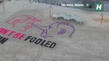 Manifestantes dibujan una gran mural en la playa de Tel Aviv con un mensaje directo a Donald Trump: "No te dejes engañar otra vez"