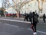 Face à face avec les forces de l'ordre en cours devant le lycée Briffaut de Valence.