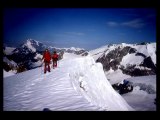 De notre camp de base (2250 m) après avoir recoupé la Dranse de Bagnes nous élevons jusqu’au Glacier Durand que nous remontons ski sur le sac jusqu’à la Pointe Blanche….