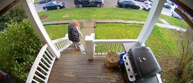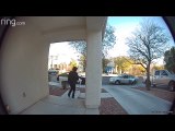 Info from Licensor: "I saw the car pull into my drive just moments after the Amazon package was dropped off. I watched the video cameras, trying to figure out who it was. I saw her bend over to take my package so I bolted down my hallway to outside. My pants were falling down so I just held them up as I ran."
