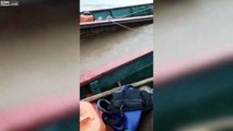 Cette grue se casse en 2 en transportant un camion au-dessus du fleuve !