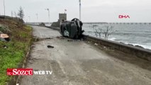 Kayganlaşan yolda otomobil takla attı