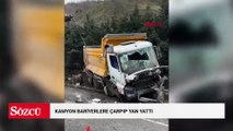 Samsun'da kamyon bariyerlere çarpıp yan yattı