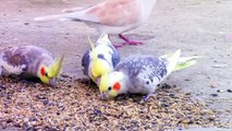 Pied_Cockatiels_with_doves,_colours_of_nature