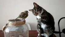 Ce chat fait un calin à un oiseau... Adorable