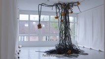 Guillaume castel réussit, bien qu’affectionnant principalement le métal, à insuffler à ses pièces le caractère fragile d’une graine ou encore d’une algue. La lumière est également partie prenante de sa démarche, car il joue des oppositions de matériaux mais également des échelles.