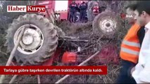 Tarlaya gübre taşırken devrilen traktörün altında kaldı