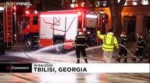 Men in masks sprayed the interior of Georgia's main cathedral with disinfectant on Friday night amid the ongoing coronavirus outbreak.