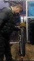 Il répare une roue voilée à sa façon