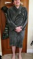 Woman Crosses Street Wearing Towel